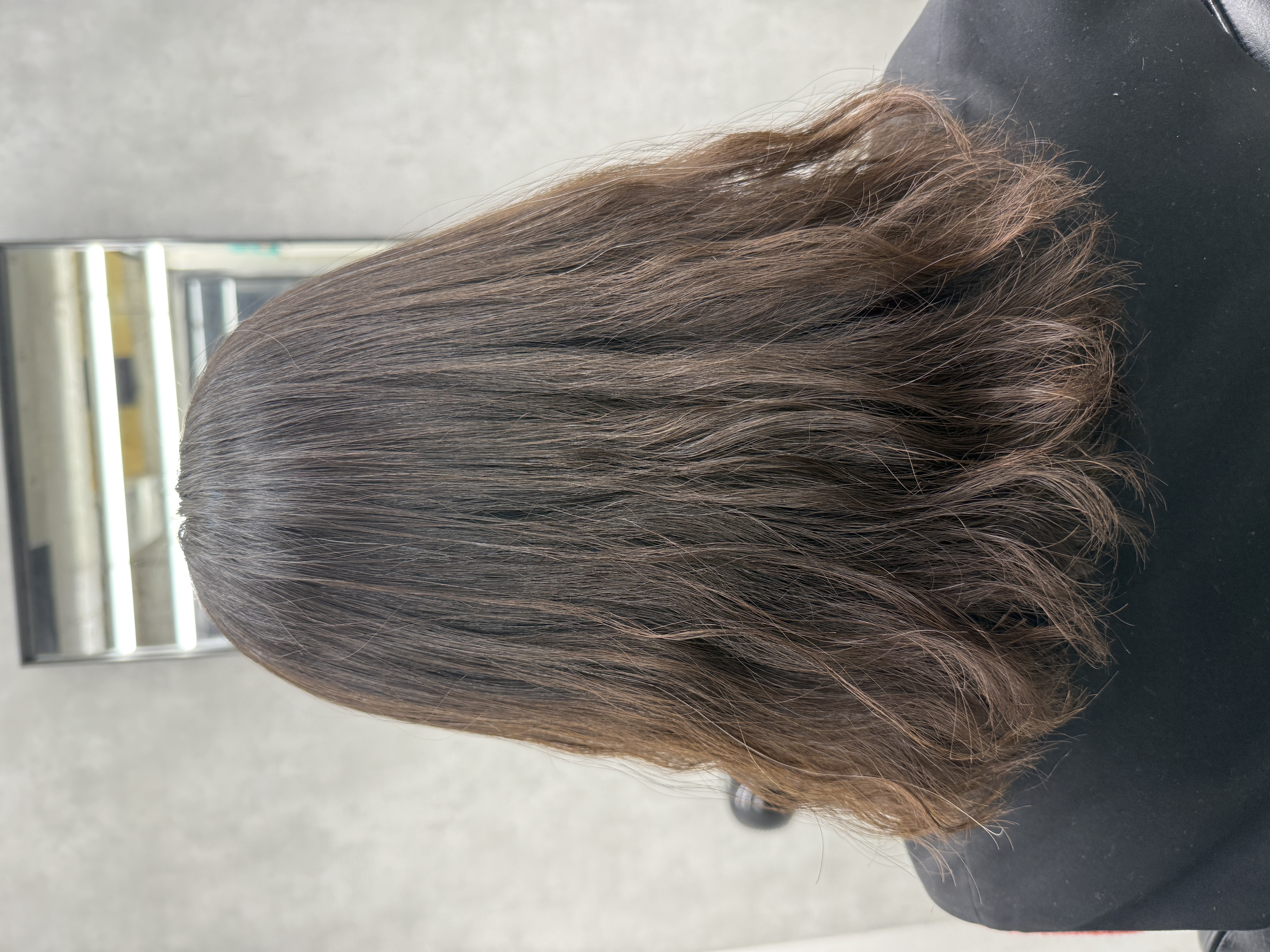 中間はパーマ履歴がありダメージも少しあるので強過ぎず弱過ぎず。パーマが残ってしまっては意味がないのでそこは塗り方、塗布料、ストレッチングという技術でアプローチ。