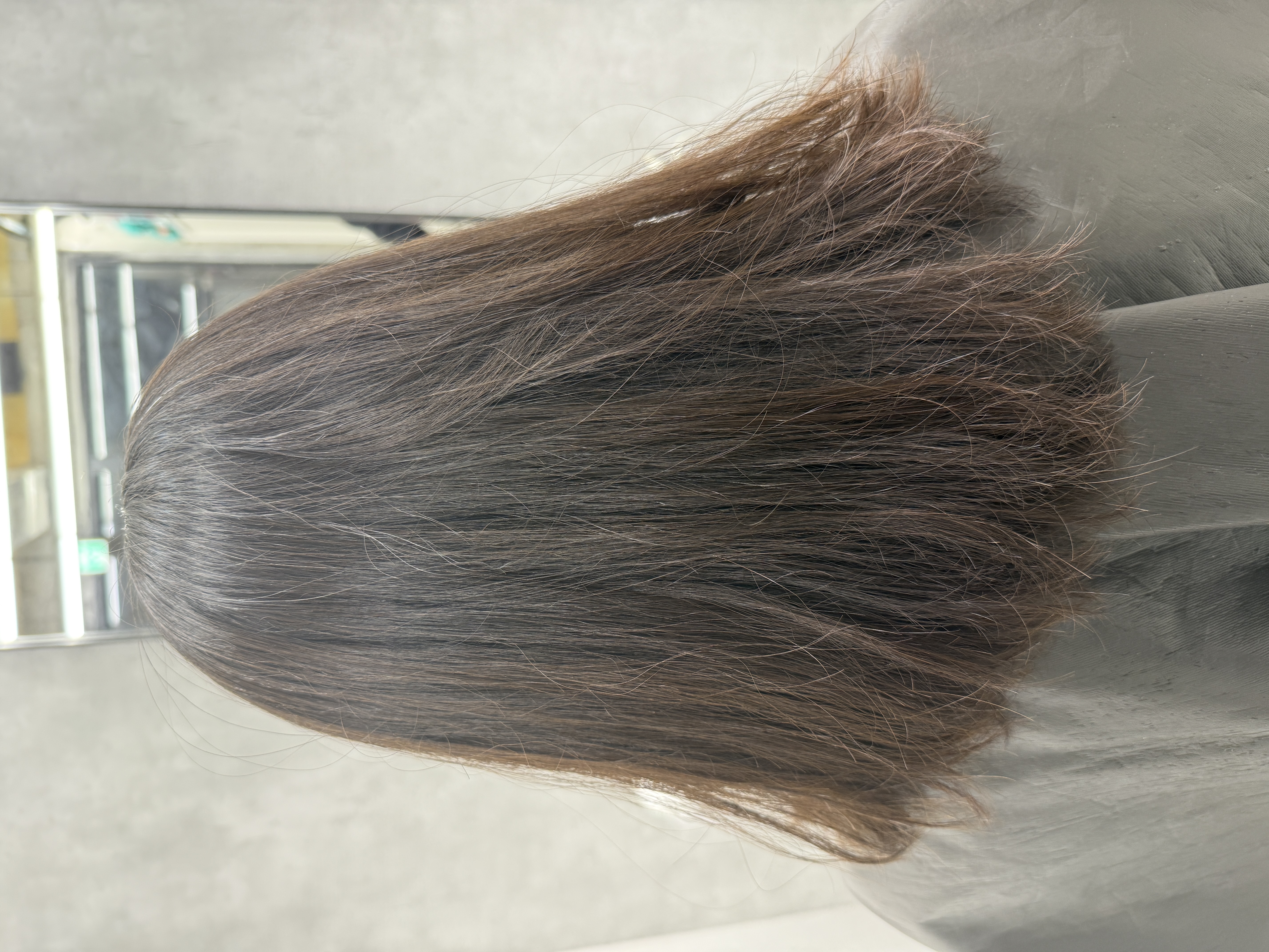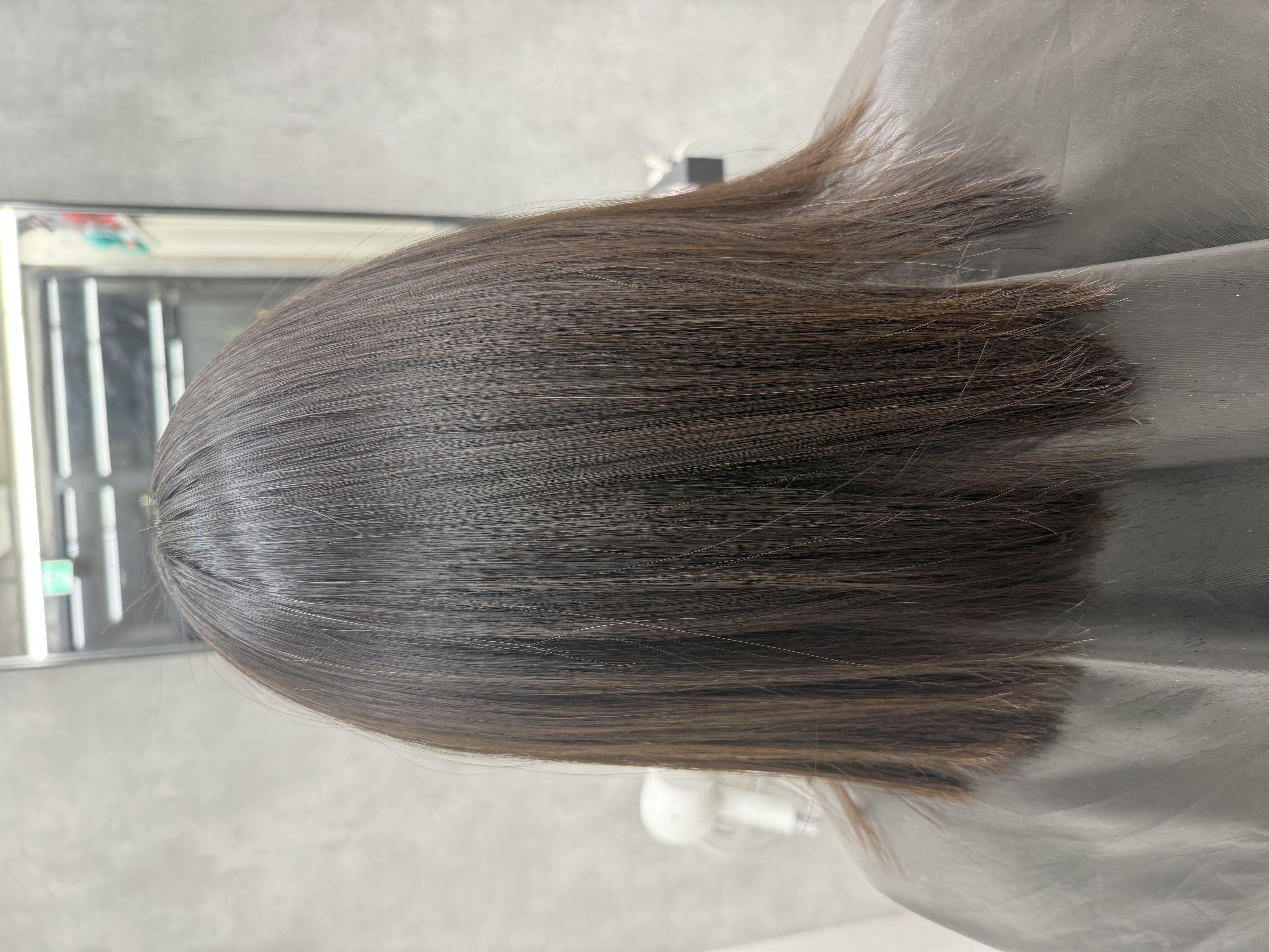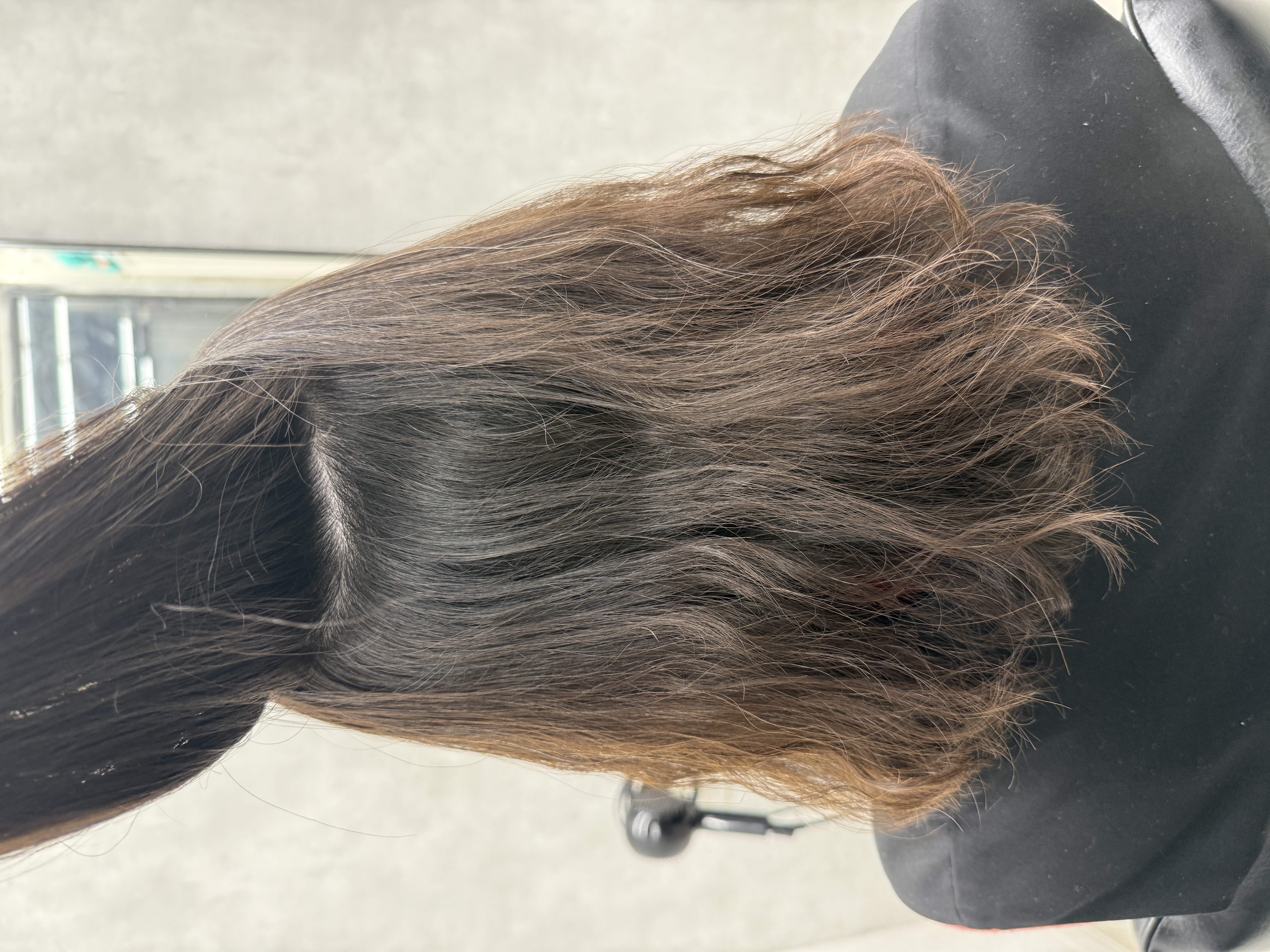 これがパーマ落としの極意。ぜひ今の髪の毛に飽きた方や質感を変えたい方はご相談ください。