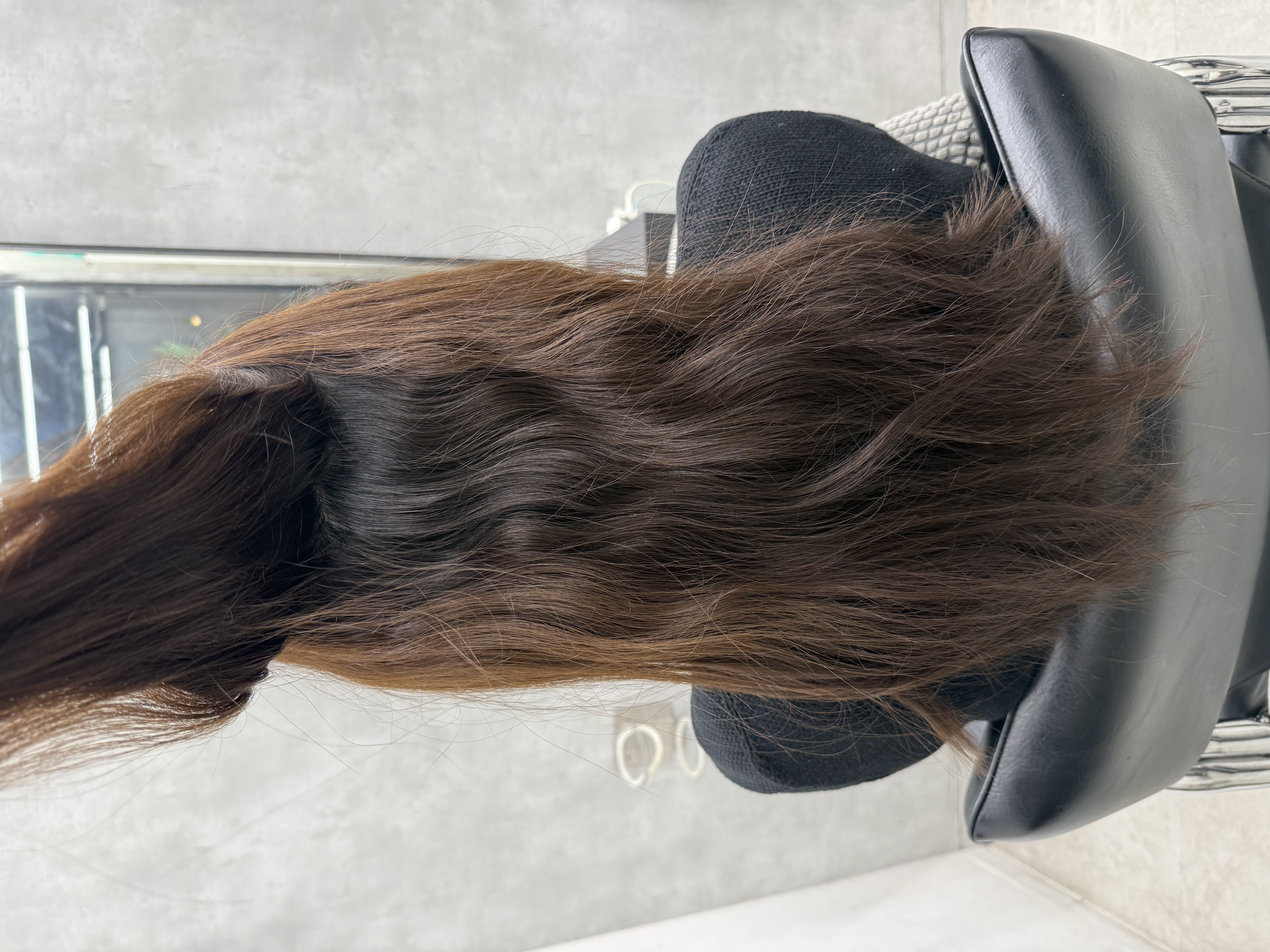 ダメージレスな質感。地毛のような柔らかく自然な質感。かけた当日からコテ巻き、シャンプーOK。
